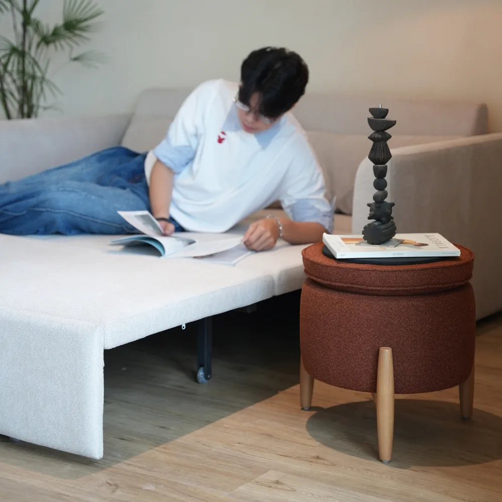 Thiết kế thông minh với phần nắp có thể lật ngược để biến thành mặt bàn, bên trong là khoang chứa rộng rãi giúp không gian luôn gọn gàng và ngăn nắp. Drum còn được bọc đa dạng chất liệu và màu vải, dễ dàng hòa hợp với nhiều phong cách nội thất từ hiện đại, trẻ trung đến tối giản tinh tế.